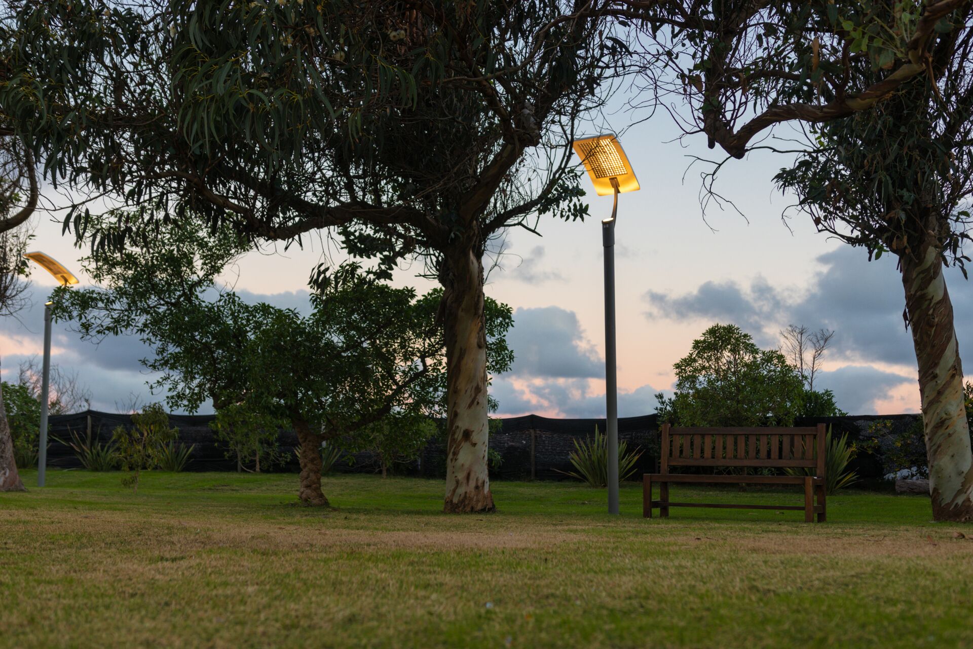 La intervención contemplo el diseño y estudio de todo el circuito de iluminación exterior vinculado con el gran espacio verde y los sectores de estacionamiento nuevos. Fueron tenidos en cuenta los espacios entre edificios y circulatorios para optimizar la iluminación de los mismos, así como se diseñaron espacios dentro del parque que fomenten la propuesta espiritual del complejo.